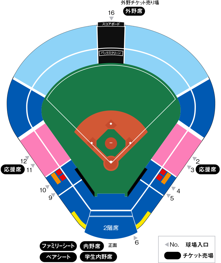 ・内野席、外野席は同伴の子供(小学生まで)無料です。ただし、指定席の場合は除きます。